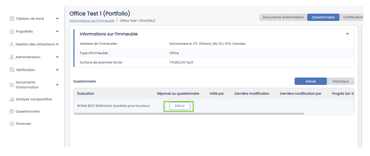 Pour commencer à répondre au questionnaire de votre bâtiment, vous pouvez suivre les étapes suivantes :